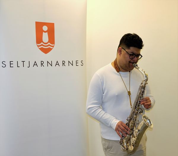 Bjössi Sax tók að sjálfsögðu lagið á saxophoninn sinn við útnefningu bæjarlistamanns Seltjarnarness 2021.