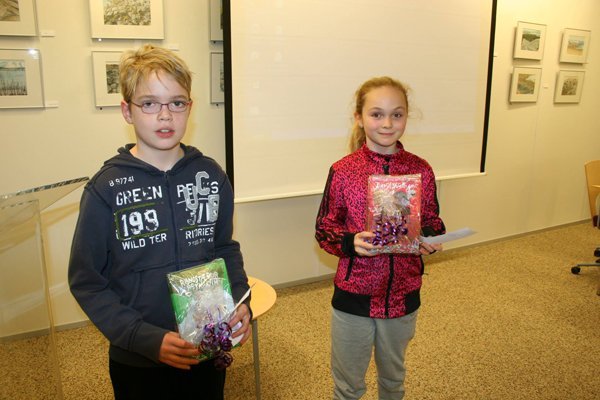 Bókaverðlaun barnanna voru afhent 2. desember í Bókasafni Seltjarnarness en vinningshafarnir voru Davíð Ingi Másson og Lovísa Scheving.