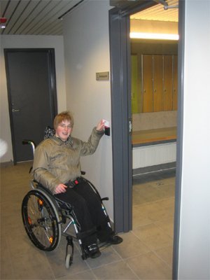 Í búningsklefanum er hreyfiskynjari sem stjórnar ljósabúnaði og gefur til kynna hvort klefinn sé í noktun eða ekki. Með tilkomu þessarar aðstöðu geta fatlaðir einstaklingar komið með aðstoðarmanneskju með sér óháð kyni.