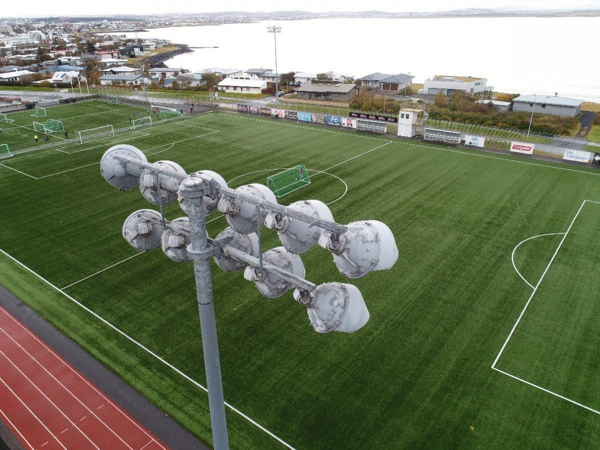 Nýverið var lokið við að endurnýja flóðlýsingu á gervigrasvellinum við Suðurströnd. Endurnýjunin var framkvæmd samkvæmt staðlinum ÍST-EN-12193:2018i um lýsingu á fótboltavelli utanhúss. Núverandi ljósamöstur voru komin til ára sinna og mikil tæring á búnaðinum vegna veðurs eins og sjá má á meðfylgjandi mynd. Útskipting gekk vel og ný vallarlýsing tilbúin fyrir næsta keppnistímabil. VSÓ ráðgjöf og Metratron sáu um þetta verkefni fyrir Seltjarnarnesbæ.