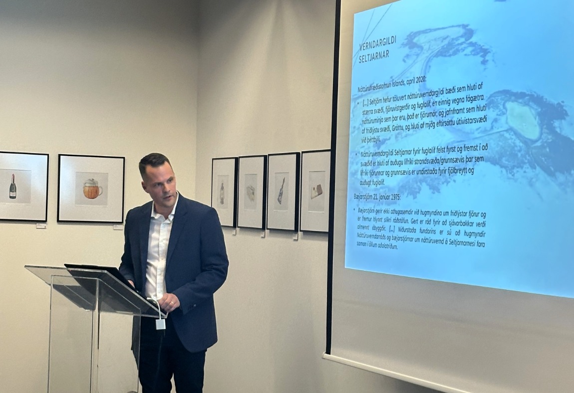 Grétar Dór Sigurðsson formaður umhverfisnefndar Seltjarnarness stýrði fundinum og hélt í upphafi kynningu á tillögunni, aðdraganda hennar, fyrri ákvarðanir, verndargildið og hvað tillagan kann að fela í sér. Jóhann Óli Hilmarsson fuglavísindamaður hélt í framhaldi erindi um fuglalífið á svæðinu, verndargildi þess m.t.t. fæðuöflunar fugla, hvíldarstað þeirra í Seltjörninni sem og sagði hann frá sjaldgæfum fjörumó og setlögum sem finnast á svæðinu.