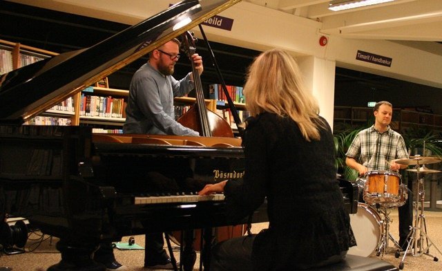 Tríó Sunnu Gunnlaugsdóttur hélt frábæra tónleika á Bókasafni Seltjarnarness miðvikudaginn 10. október.