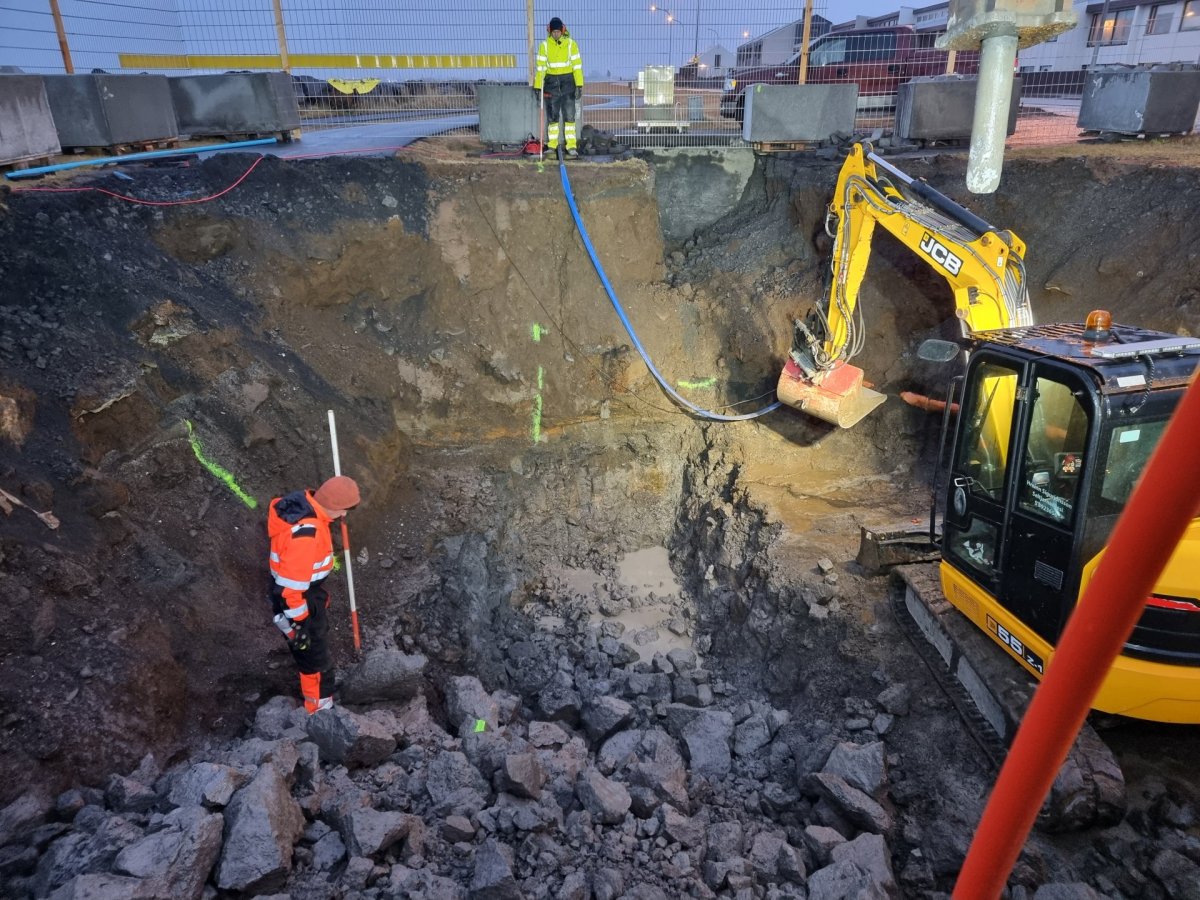 Dæluhúsið verður neðanjarðar en grafa þarf 6 metra niður í heildina, fleyga þurfti klöpp til að ná alla leið og styttist nú í að húsið komi á staðinn.