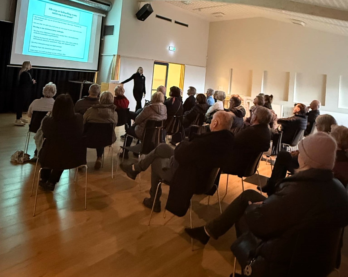 Hann var vel sóttur kynningarfundurinn sem haldinn var í hátíðarsal Gróttu um heilsueflinguna Frísk í Gróttu eins og sjá má á myndinni. Áhuginn var mikill og fjöldi fólks sem skráði sig á upphafsnámskeiðið og bíður spennt eftir því að byrja þann 11. mars nk.