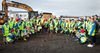 Ásgerður Halldórsdóttir bæjarstjóri Seltjarnarness og Dagur B. Eggertsson borgarstjóri Reykjavíkur ásamt þeim Hrólfi Jónssyni, sviðsstjóri eigna og atvinnuþróunar Reykjavíkurborgar, Elínu Smáradóttur formanni Gróttu, Magnúsi Erni Guðmundssyni formanni ÍTS, og Maríu Magnúsdóttur formanni fimleikadeildar Gróttu munduðu öll skreyttar skóflur umkringd flottum hópi Gróttukrakka við þessa táknrænu athöfn.