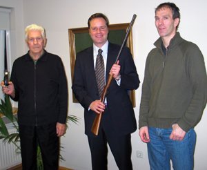 Ættingjar Alberts Þorvarðarsonar fyrrverandi vitavarðar í Gróttu komu færandi hendi til Jónmundar Guðmarssonar bæjarstjóra og gáfu Seltjarnarnesbæ ýmsa hluti sem voru í eigu Alberts s.s. riffil, tóbakshorn, netanálar, ljósmyndir og fleira.