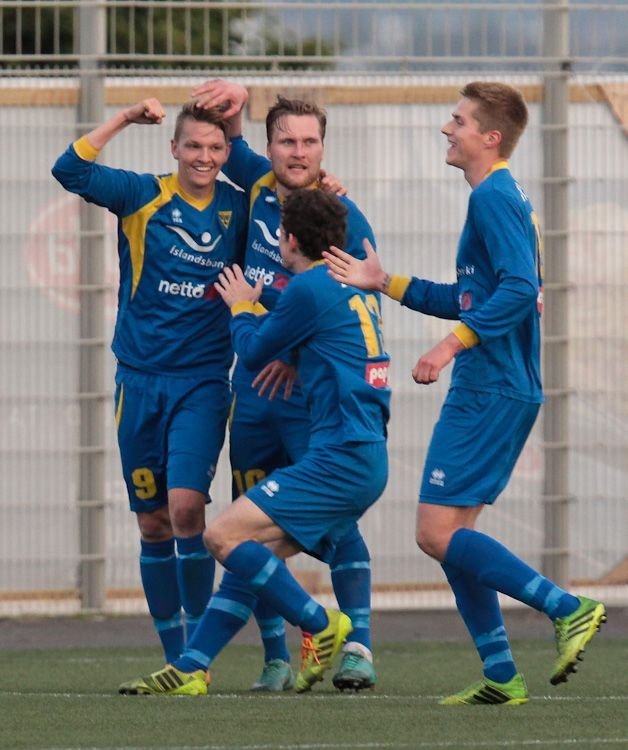 Grótta tryggði sér í gær sæti í 1. deild karla í knattspyrnu eftir frækilega sigur á Aftureldingu 4-1. Viggó Kristjánsson skoraði tvö mörk fyrir Seltirningana og Arnar Sigurðsson og Jóhannes Hilmarsson eitt mark hvor.