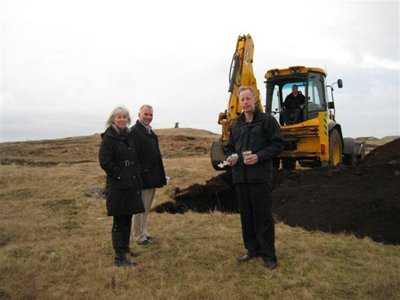Á myndinni er Ásgerður Halldórsdóttir bæjarstjóri ásamt Stefáni Eiríki Stefánssyni bæjarverkfræðingi, Snorra Aðalsteinssyni félagsmálastjóra og Hreini Sigurjónssyni gröfumanni.