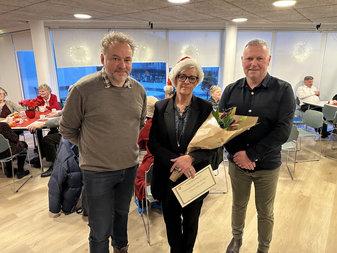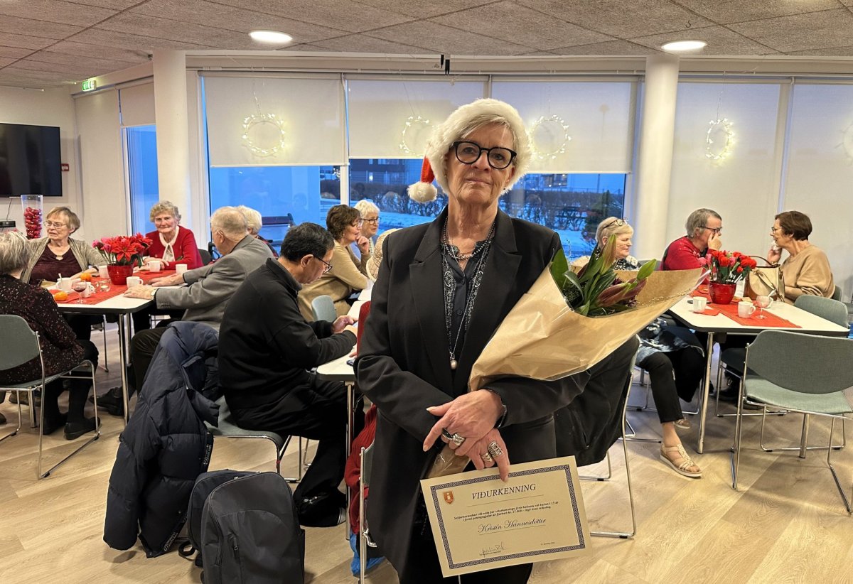 Kristín Hannesdóttir, forstöðukona félagsstarfs eldra fólks á Seltjarnarnesi, var kvödd að viðstöddu fjölmenni á jólagleði félagsstarfsins í vikunni og fékk á sama tíma 15 ára starfsaldursviðurkenningu.
