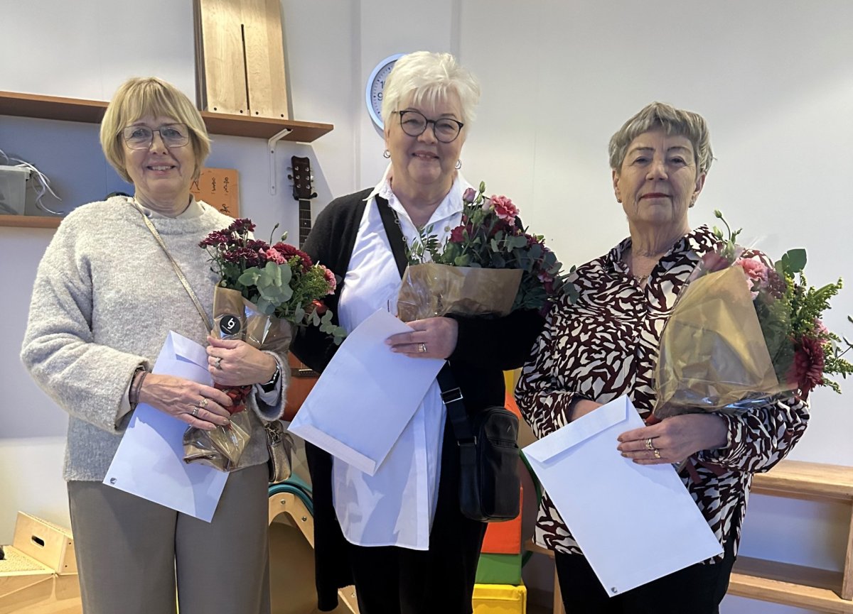 Anna Stefánsdóttir, Arna Þorvalds og Þórdís Einarsdóttir voru heiðraðar í dag og þeim þökkuð vel unnin störf á Leikskóla Seltjarnarness. Þær útskrifuðust allar frá Fóstruskóla Íslands, Anna árið 1974, Þórdís árið 1975 og Arna árið 1992 og hafa unnið sem leikskólakennarar allar götur síðan, lengst af á hér á Seltjarnarnesi eða sameiginlega í hartnær 100 ár sem hlýtur að vera nokkuð einstakt.
