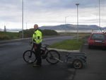 Ágúst Fannar Leifsson, einn af starfsmönnum Áhaldahúss Seltjarnarness, fer sæll og glaður í útréttingar á vegum bæjarins á nýjum fararskjóta sem bærinn hefur nýlega fjárfest í. Hjólið er með vagni og því afar hentugt til flutnings á léttari efni sem flytja þarf á milli staða. Með því að hjóla í ýmis léttari erindi og viðvik leysir það starfsmenn áhaldahússins undan notkun á bæjarbifreiðum, sem sparar mikinn kostnað. Almennt eru vegalengdir stuttar á Seltjarnarnesi, en ef á móti blæs, eins og stundum vill verða á Nesinu, þá getur Ágúst auðveldlega létt undir með sér og virkjað rafbúnaðinn á hjólinu. Starfsmenn Áhaldahúss Seltjarnarness eru ánægðir með þennan nýja flutnings- og ferðavalkost, sem auk þess að vera umhverfisvænn, er fyrirferðarminni en bifreiðarnar, mun sparneytnari og auk þess góð líkamsrækt. Hér má sjá umfjöllun mbl/sjónvarp.