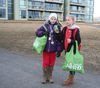 Á myndinni halda Gróttustelpurnar Hrund og Grethe á græna umhverfisvæna