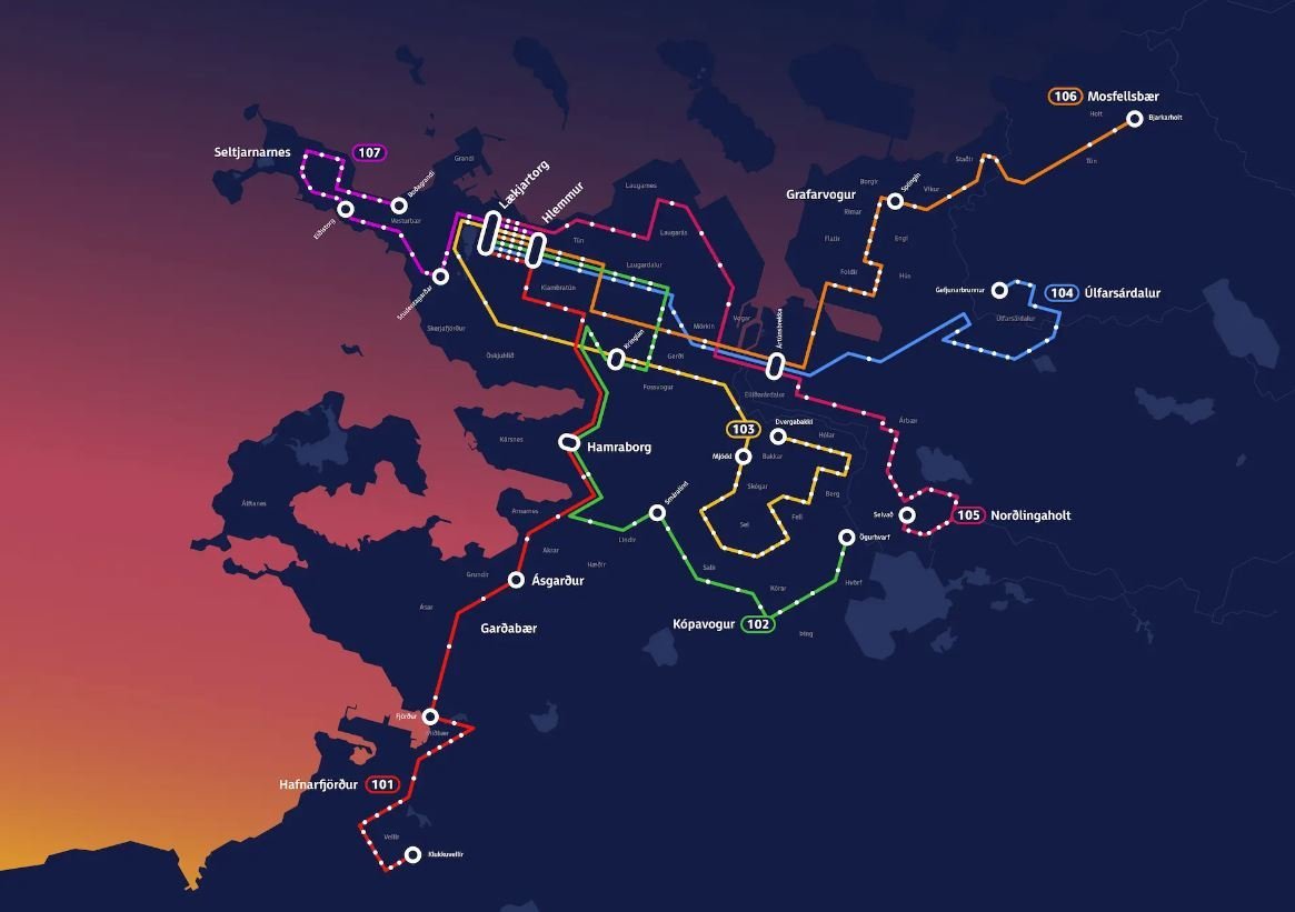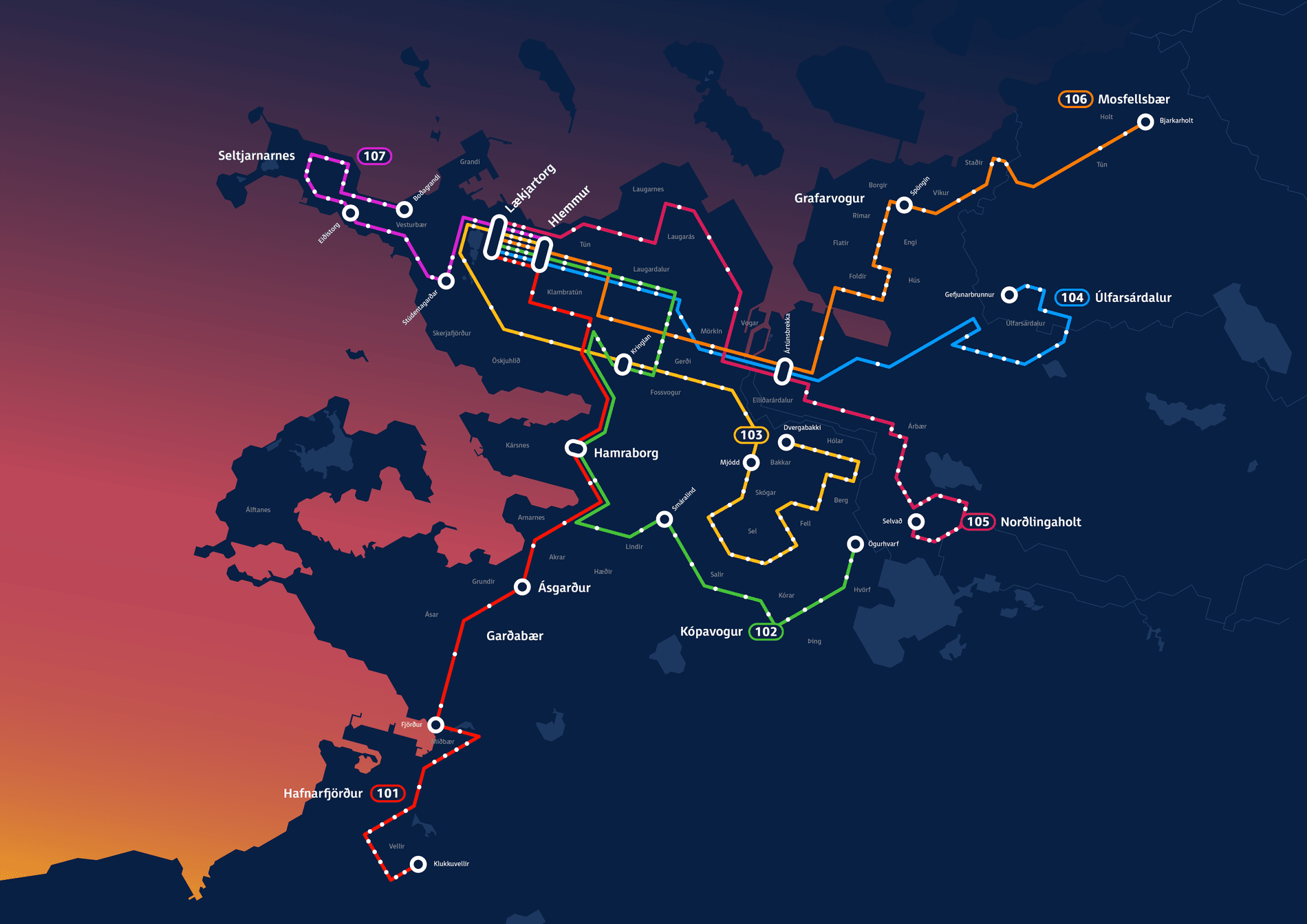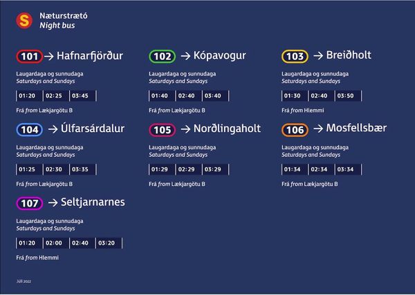 - Aðeins er hægt að taka næturstrætó út úr miðbænum en ekki til baka.