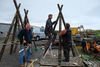 Trönurnar við Snoppu hafa löngum þótt eitt af merkari kennileitum bæjarins og verður fengur af því að fá þær aftur á sinn stað en í gær var hafist handa við að endurreisa þær.