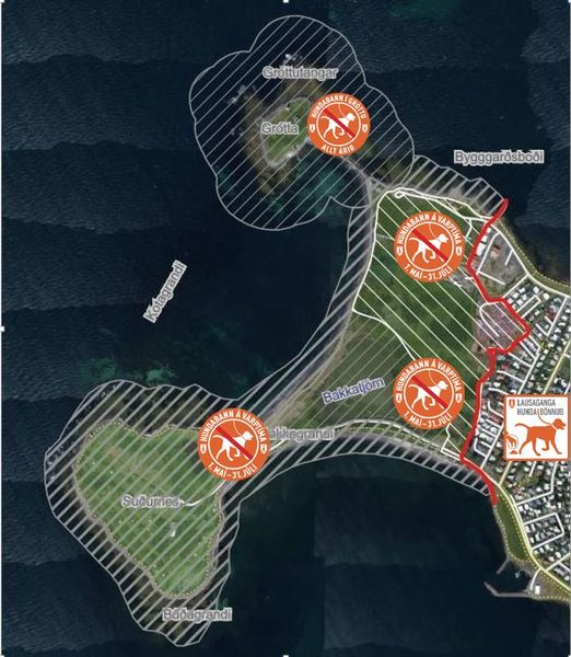 Ferðabann um friðlandið við Gróttu hefur tekið gildi og stendur frá 1. maí - 31. júlí. Hundabann gildir á sama tíma á Vestursvæðunum og kattaeigendur hvattir til að setja bjöllur á sína ketti og/eða halda þeim innandyra.
