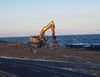Nú standa yfir viðgerðir á sjóvarnargarðinum við Norðurströnd rétt hjá Hákarlahjallinum.