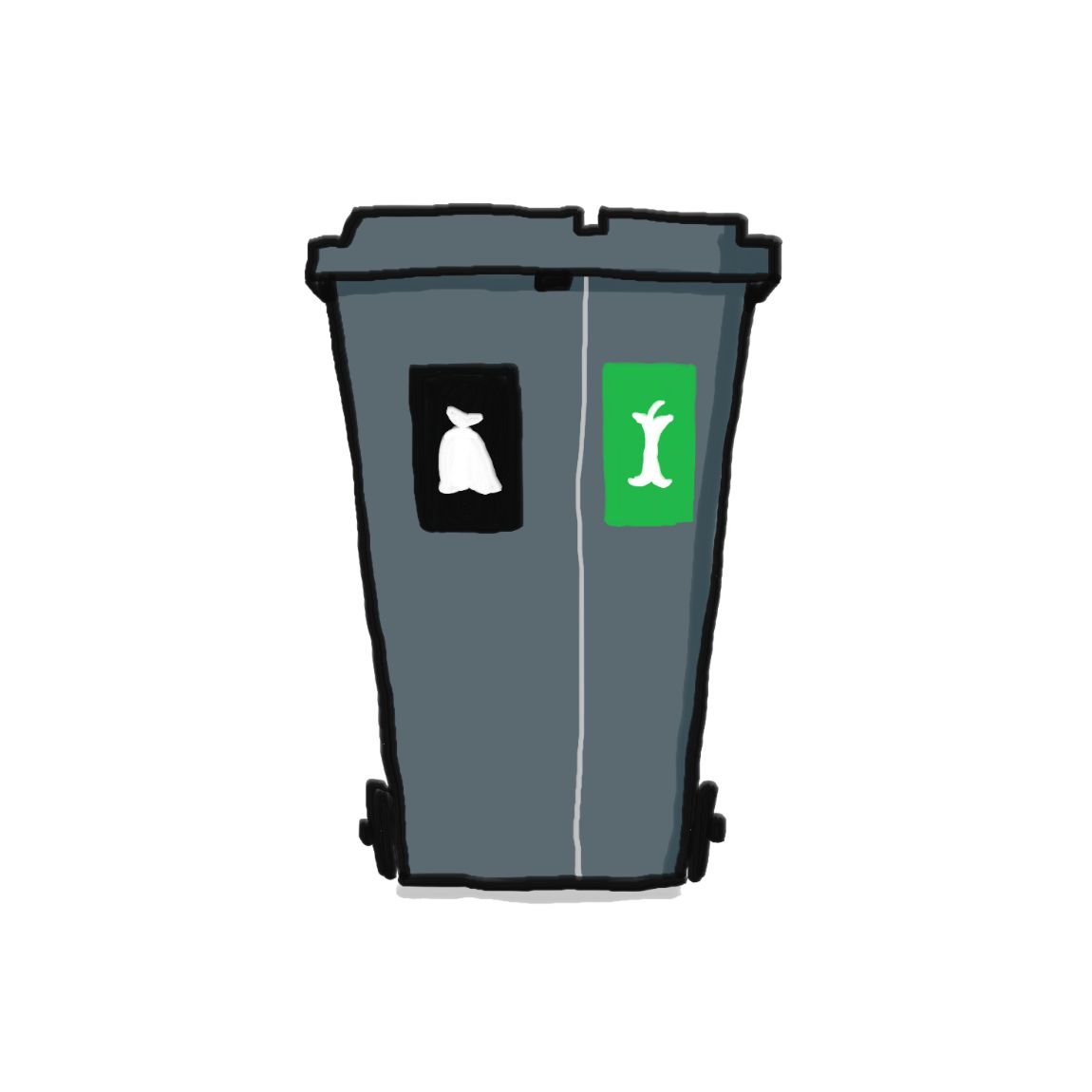 Tvískiptu tunnurnar er jafn stórar og hinar hefðbundnu 240 lítra tunnur. Eina breytingin er að þær eru með sitthvort hólfið og lokin opnast til hliðar í staðinn fyrir á móti þeim sem stendur fyrir framan tunnuna.