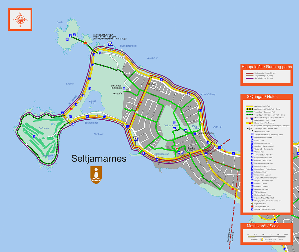 Kort með göngu- og hjólastígum á Seltjarnarnesi