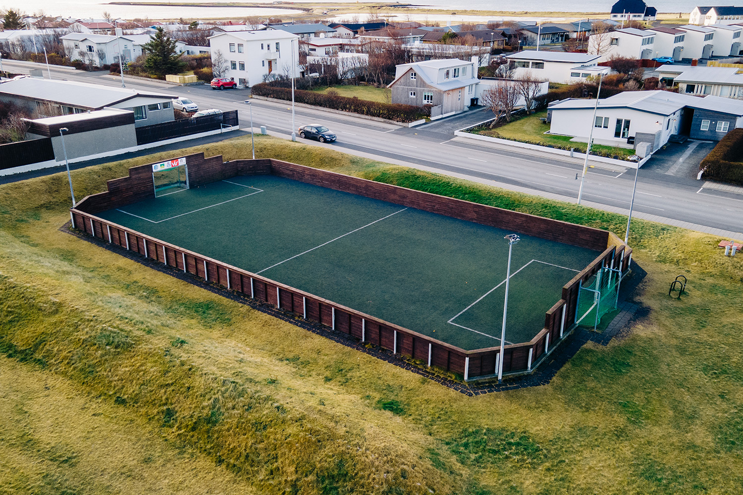 • Á opnu svæði við Eiðismýri eru fótboltamörk fyrir boltaleiki.