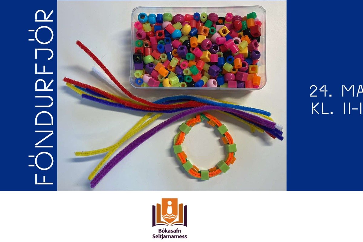 Sæunn barnabókavörður býður börnum og fjölskyldum þeirra upp á skemmtilegt vinabandaföndur.