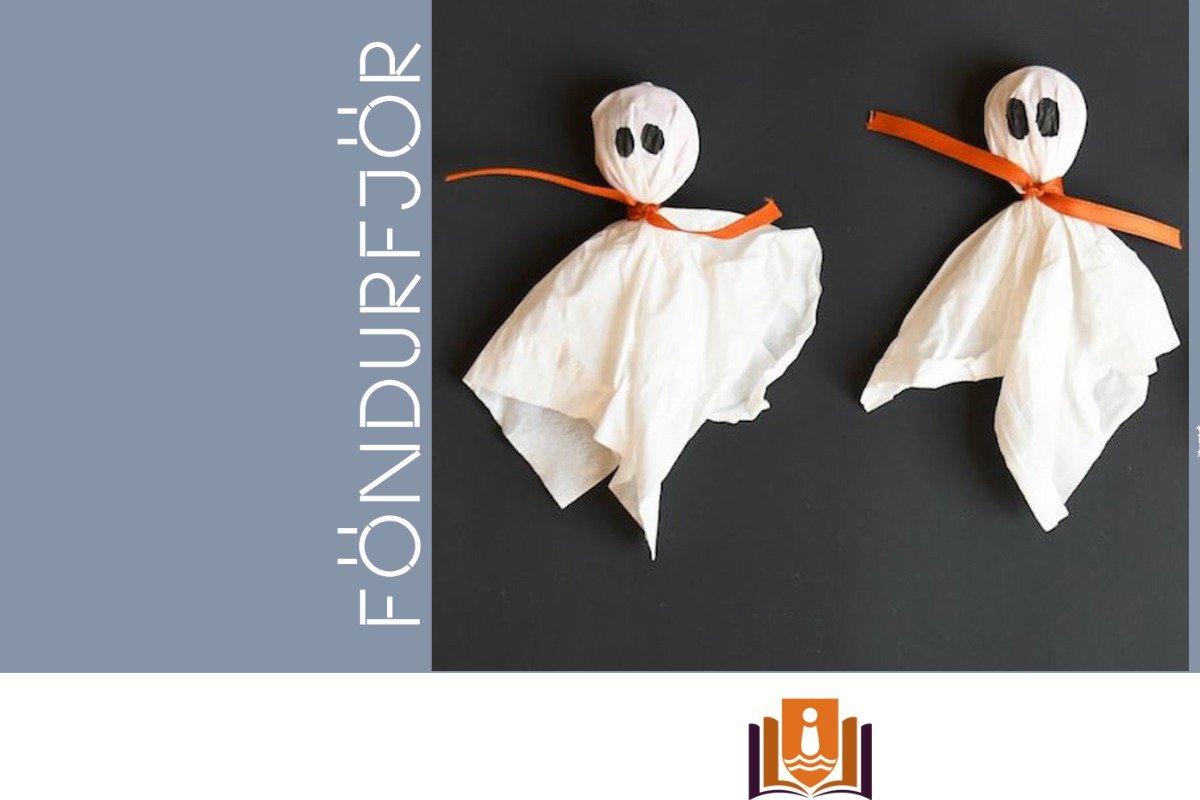 Börnum og fjölskyldum þeirra býðst að gera skemmtilegt og einfalt hrekkjavökuföndur – Leiðbeiningar og efni á staðnum.