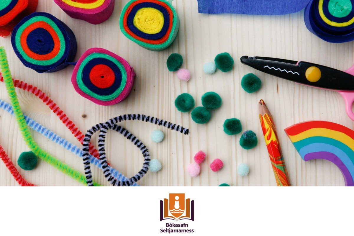 Sæunn barnabókavörður býður börnum og fjölskyldum þeirra upp á skemmtilegt föndur.