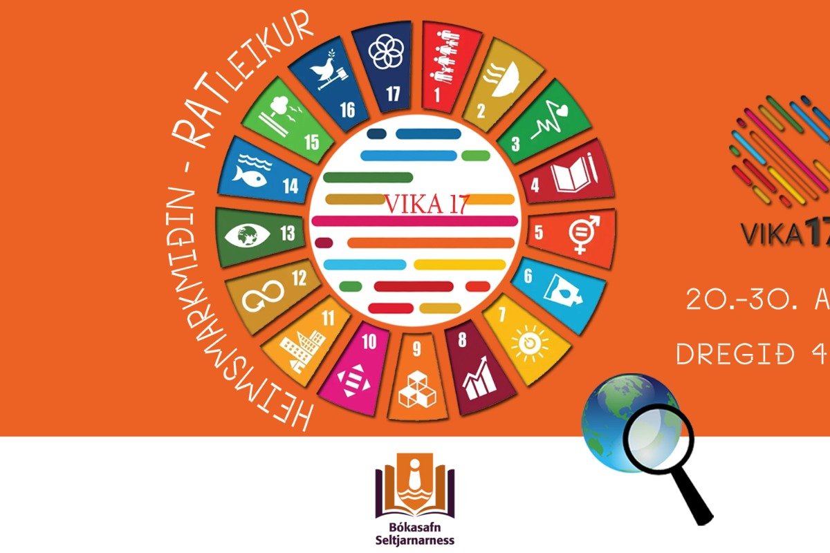 Ratleikur. Vika 17 er alþjóðleg vika heimsmarkmiðanna á bókasöfnum og hefst í 17. viku ársins.