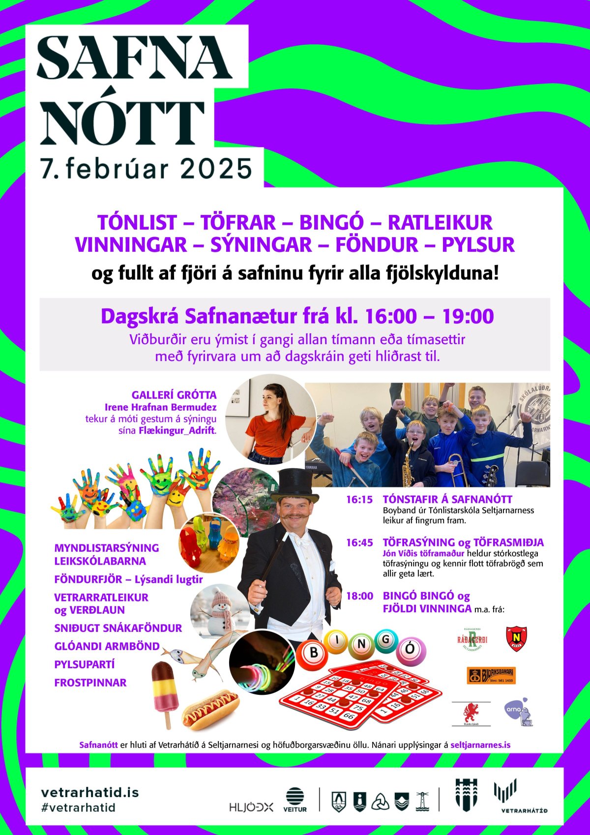 Myndlistarsýning leikskólabarna - Tónlist - Bingó - Föndurfjör - Barnaskemmtun - VetrarRatleikur - Pylsupartí - Frostpinnar Listamannaspjall í Gallerí Gróttu ofl.