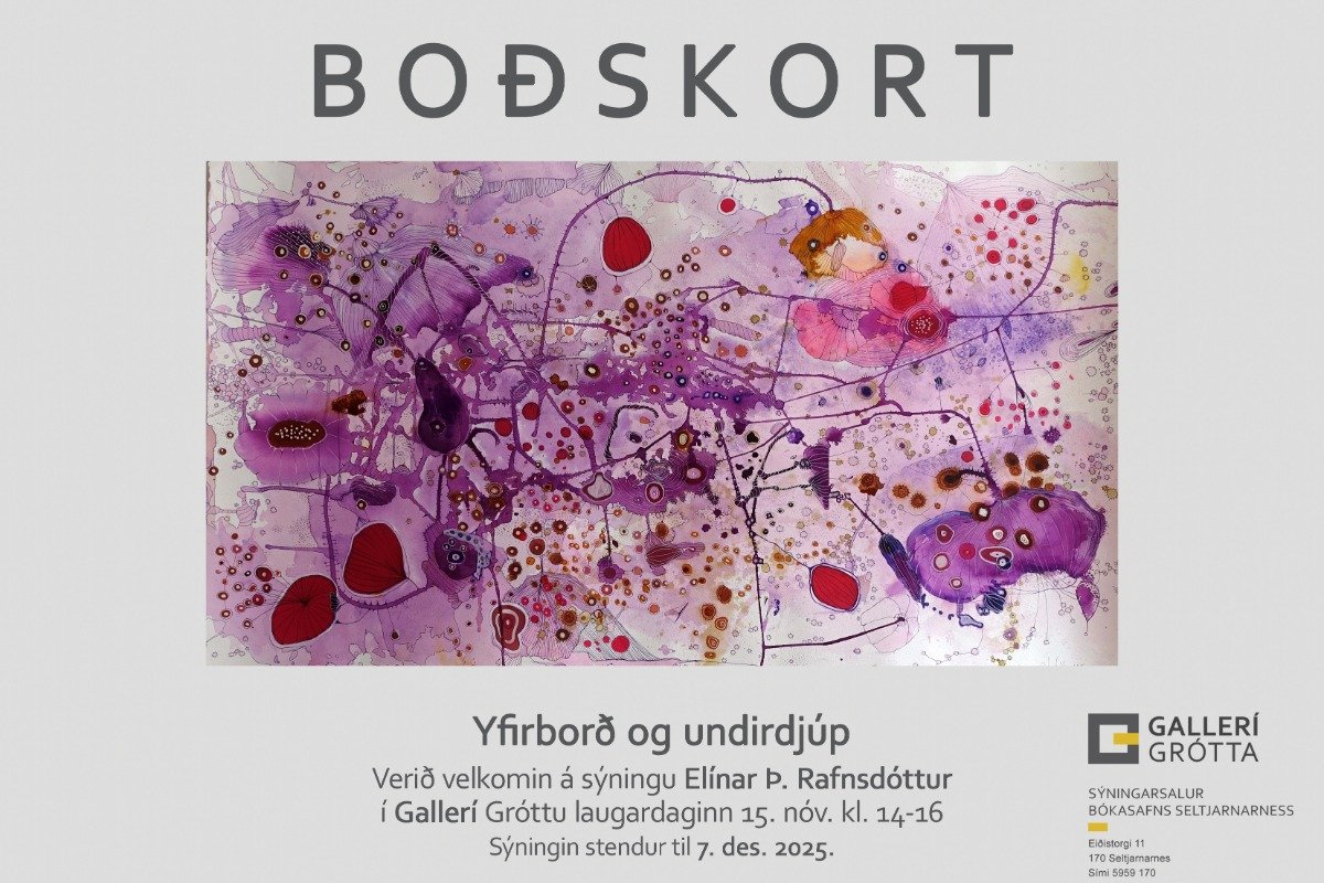 Elín Þ. Rafnsdóttir opnar einkasýningu sína Yfirborð og undirdjúp í Gallerí Gróttu á Eiðistorgi laugardaginn 15. nóvember kl. 14–16.