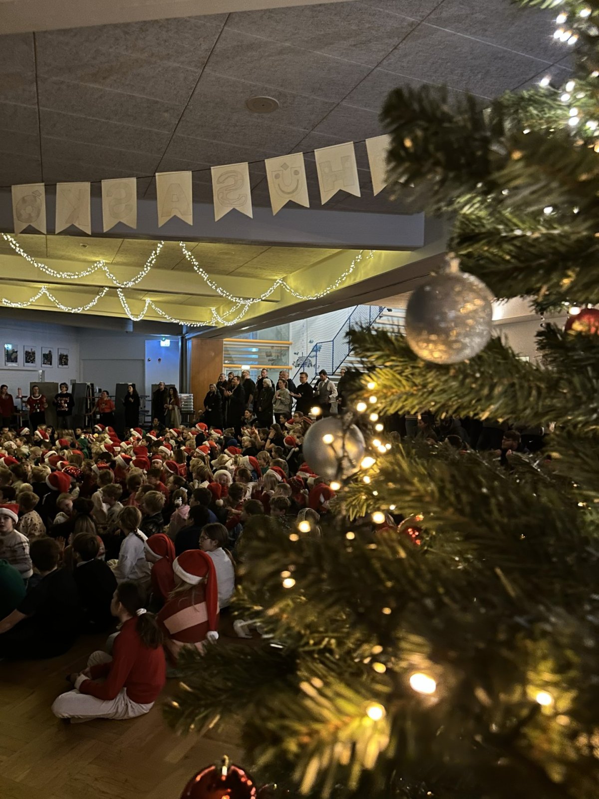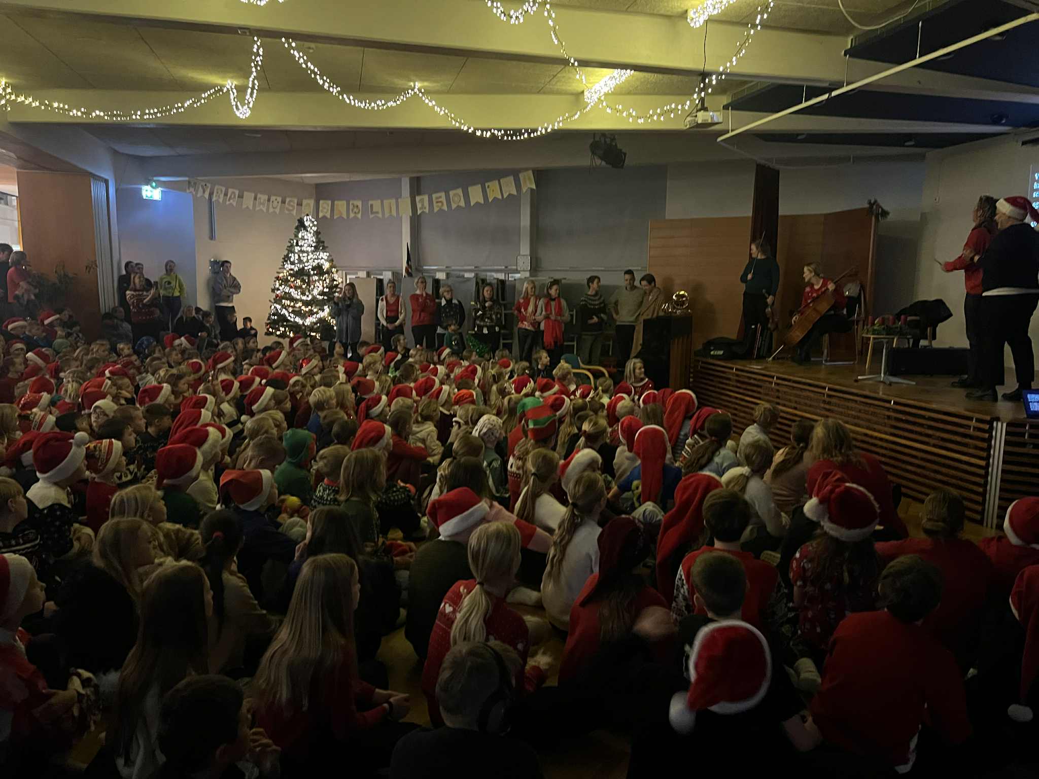 Í morgun var haldinn jólasamsöngur í Mýrarhúsaskóla þar sem nemendur, starfsfólk og foreldrar komu saman og sungu bæði hátíðleg og fjörug jólalög.