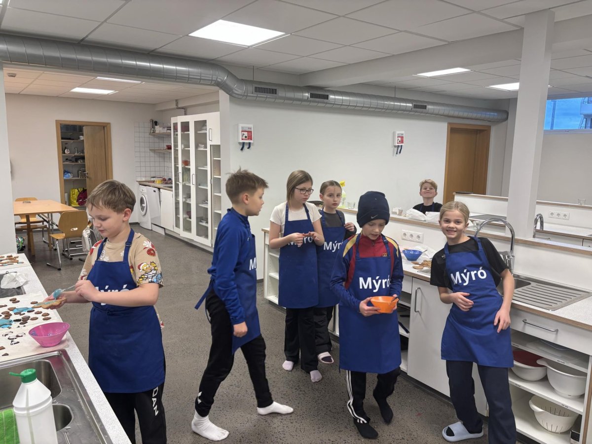 Brosin skína af hverju andliti og samvinnan er til fyrirmyndar. Það er augljóst að nemendur njóta sín í botn við að útbúa jólalegar krásir og skreyta af hjartans lyst. Þessi notalega stund í eldhúsinu fyllir okkur öll af tilhlökkun fyrir hátíðunum. Við hvetjum foreldra til að spyrja börnin út í verkefnin, því hér verða til dýrmætar minningar í bland við gómsætt góðgæti.