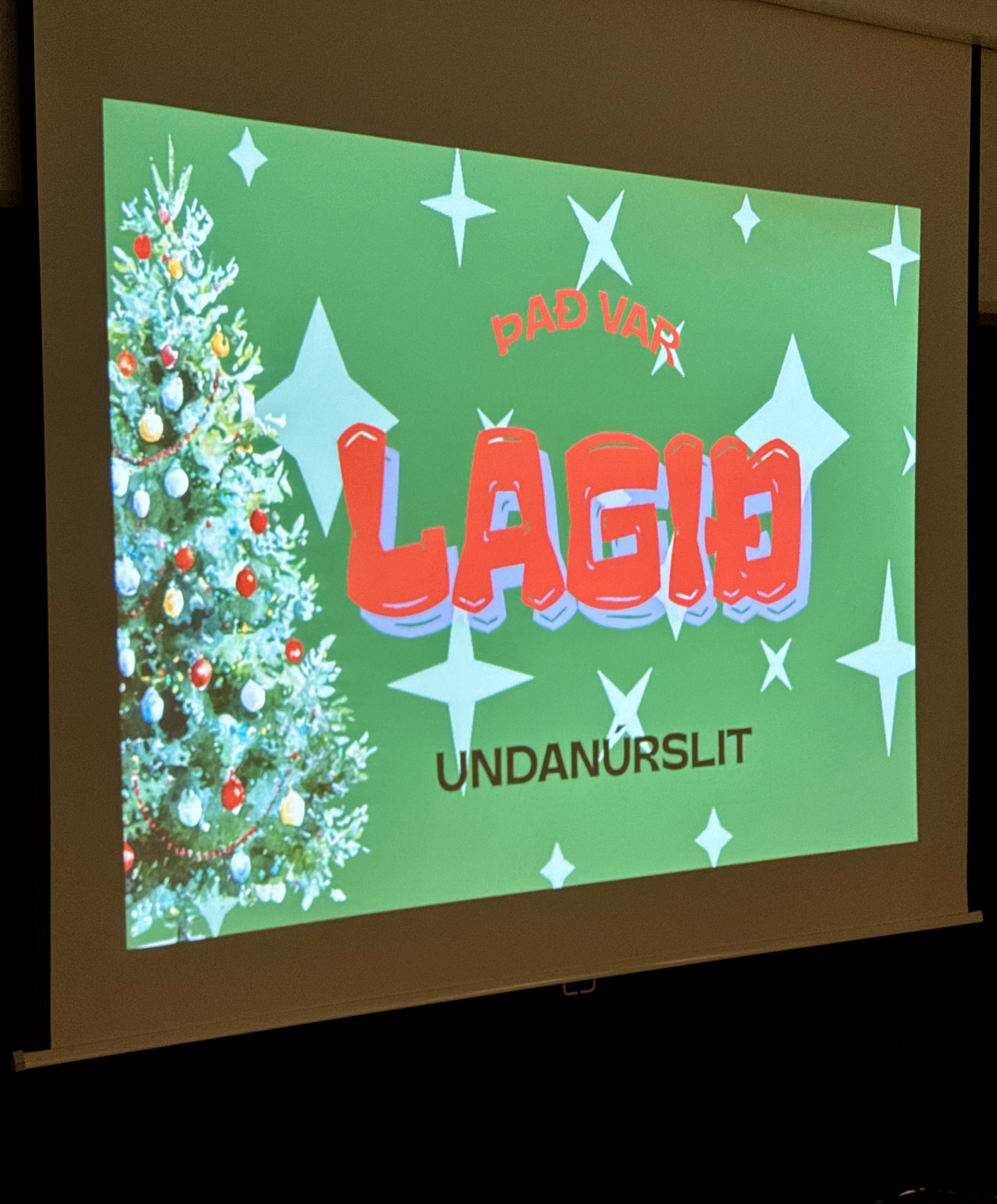 Einnig var hin geysi vinsæla og skemmtilega keppni Það var lagið haldin milli árganga. Nemendur í 9. og 10. bekk báru sigur úr býtum í undanúrslitum í dag og keppa því til úrslita á morgun,