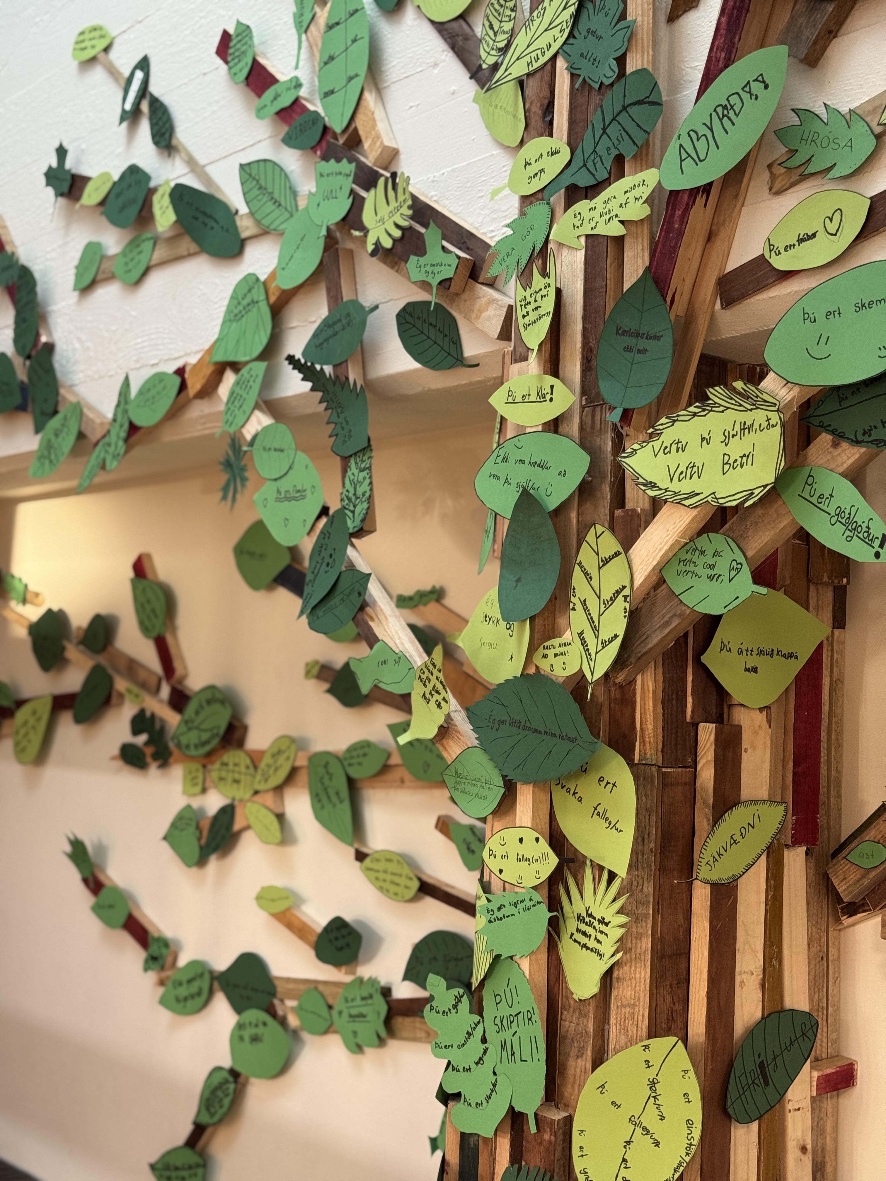 Eftir fræðsluna unnu nemendur saman að kærleikstré og tóku þátt í samvinnu- og hópstyrkingarleikjum.
