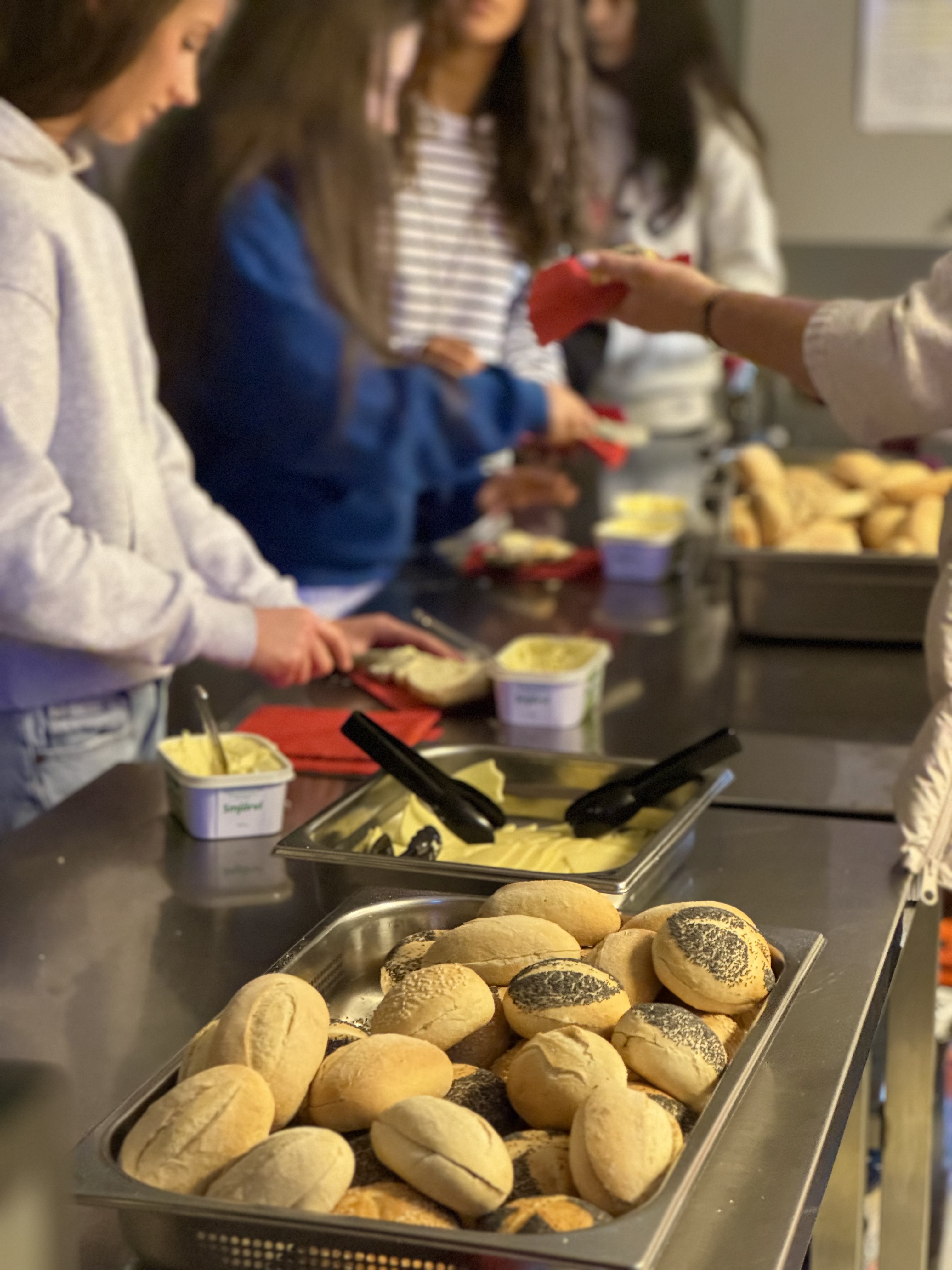 Skólinn bauð upp á heitt kakó og rúnstykki í morgunkaffinu sem féll einstaklega vel í kramið á köldum morgni.