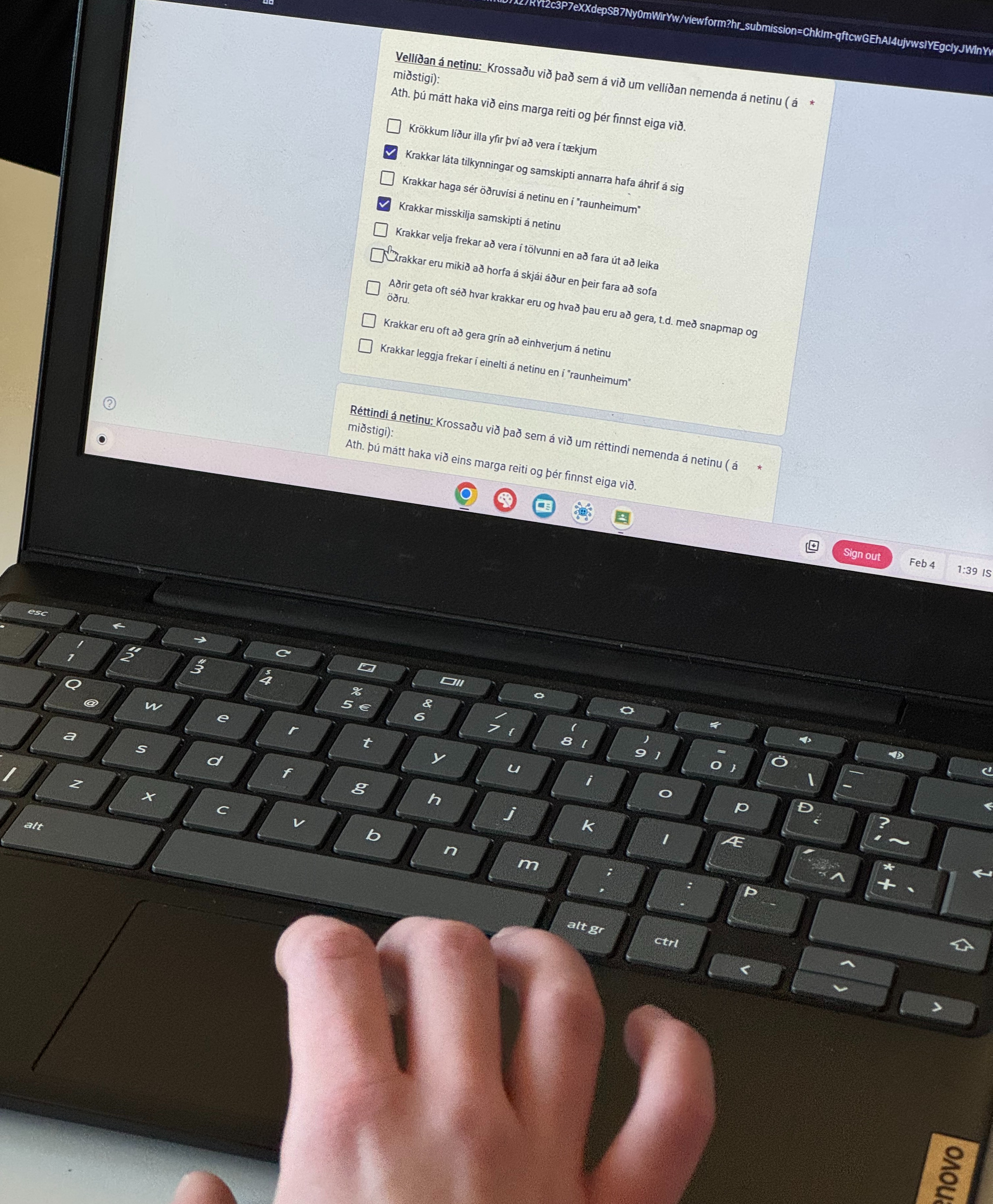 Á næstu vikum vinna nemendur í hópum að því að greina hættur á netinu og búa til kynningar og fræðslumyndbönd um netnotkun, vellíðan- og réttindi á netinu. Verkefnið er árlegt þróunarverkefni í samstarfi við Heimili og skóla.