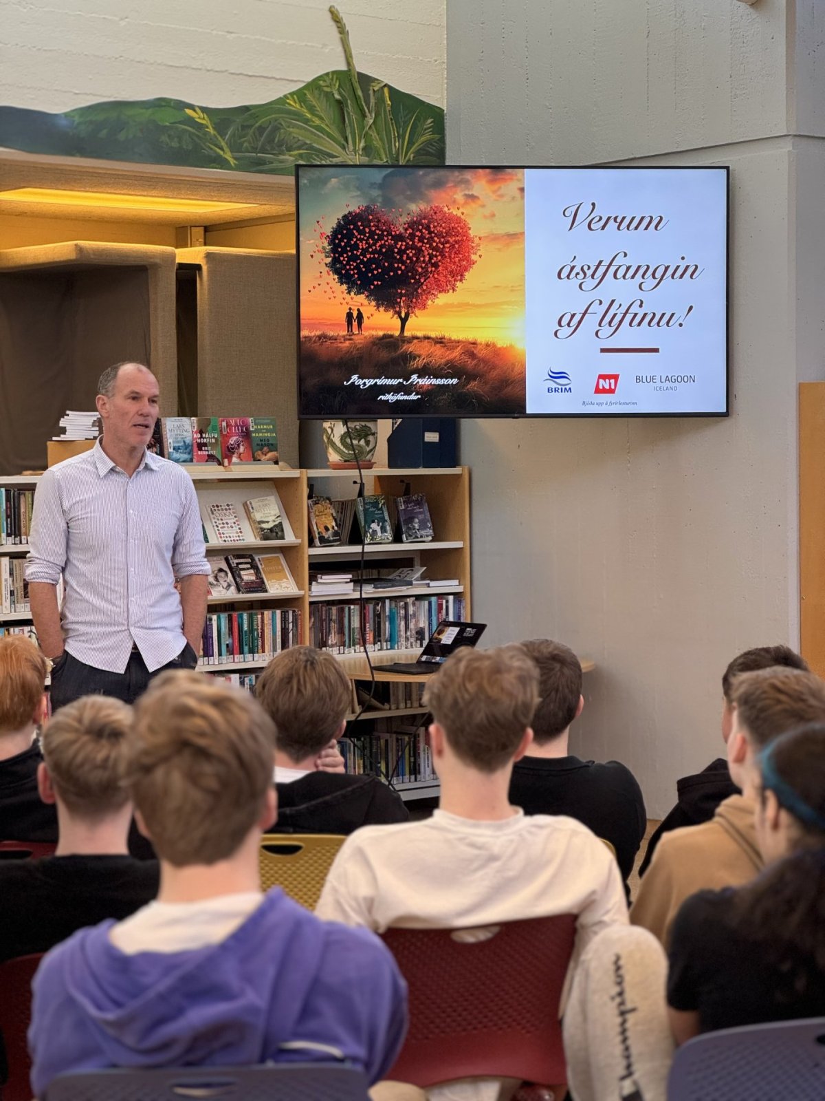 Í dag heimsótti Þorgrímur Þráinsson nemendur í 10. bekk og hélt fyrirlestur sinn „Verum ástfangin af lífinu“