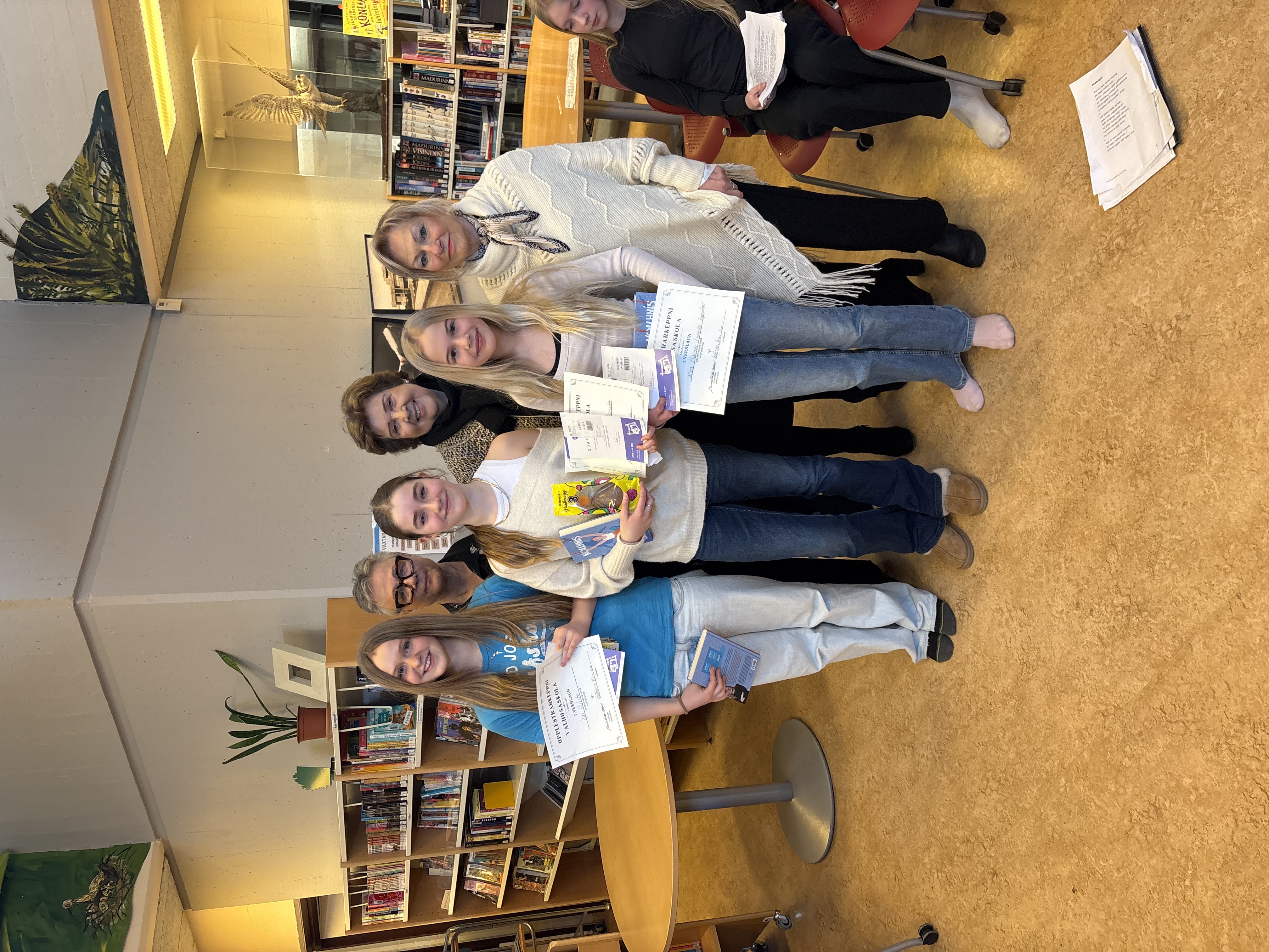 Í dag fór fram upplestrarkeppni 7. bekkinga á bókasafni skólans. Alls tóku 12 nemendur þátt og fluttu bæði ljóð og bókmenntatexta af mikilli færni og innlifun.